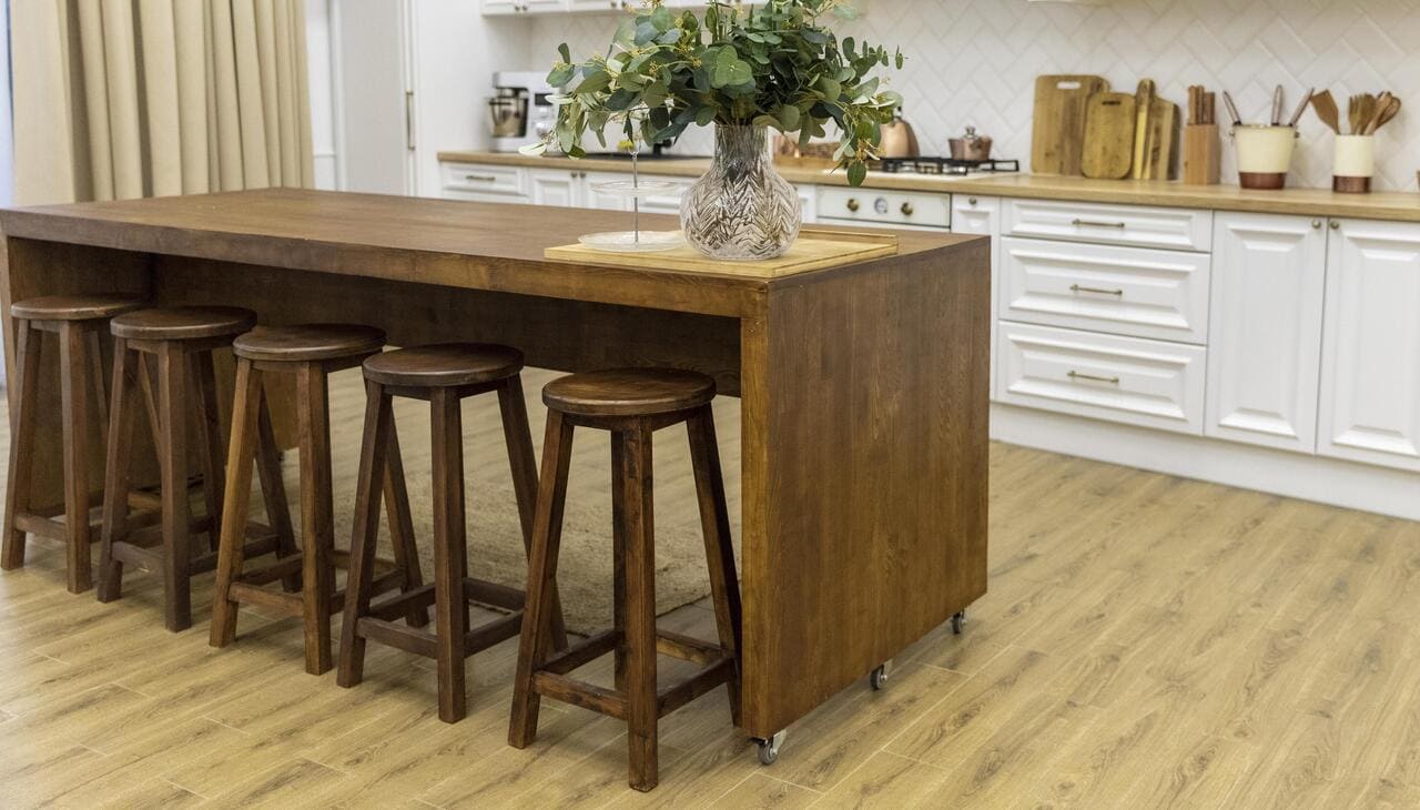 Ламинат – это стильное решение для тех, кто хочет придать кухне уют и тепло. Важно выбирать водостойкий ламинат, который не боится проливов и влажной уборки. Однако нужно помнить, что ламинат все же менее устойчив к воде, чем плитка или линолеум.