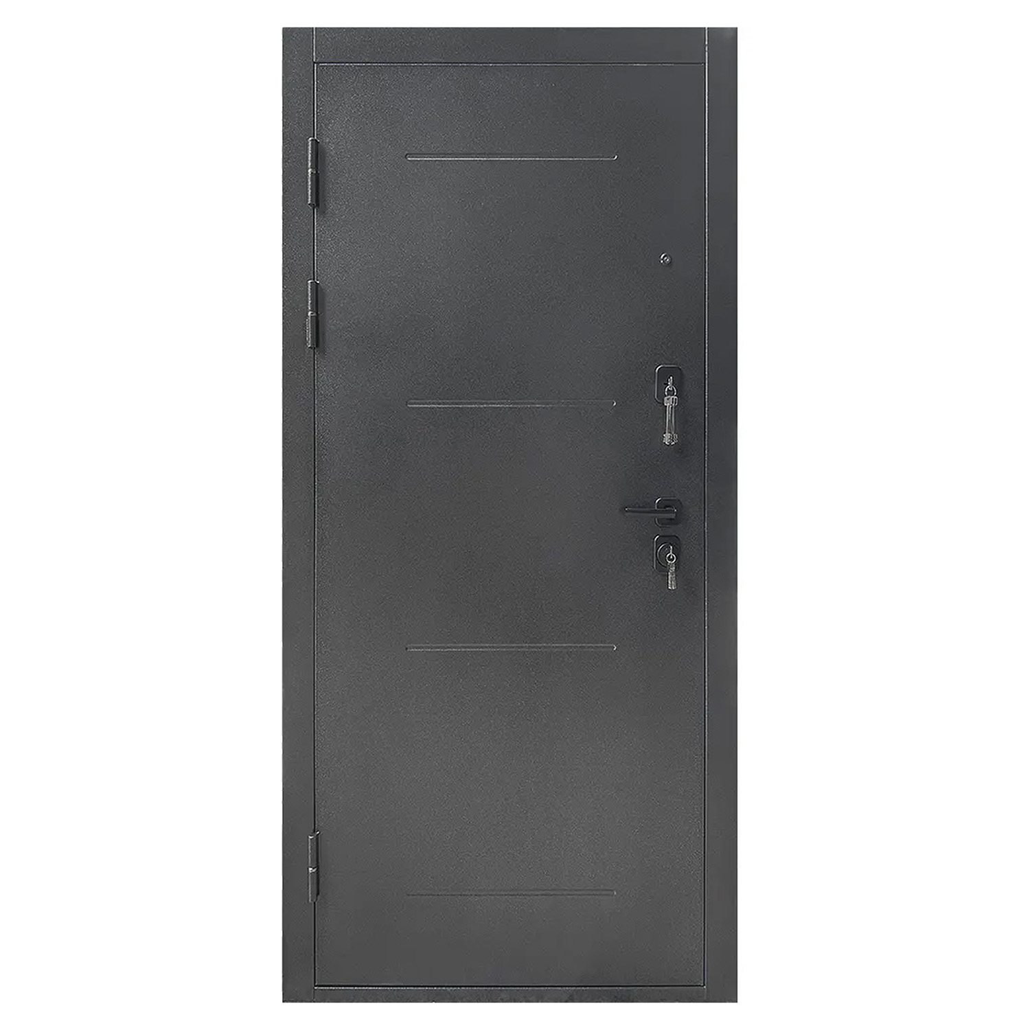 Дверное полотно, дверная коробка, замок основной, замок дополнительный, петли - 3 шт., ручки, наклад |