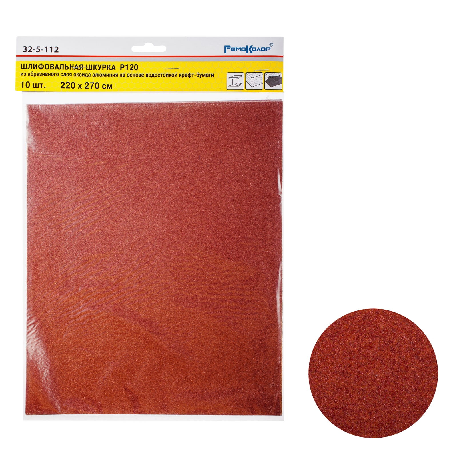 Шлифшкурка 220*270 зерно 120 оксид алюминия водостойкая бумажная (10шт)арт.32-5-112 Ремоколор*1/80