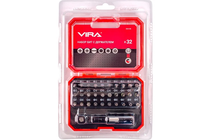 Набор бит 25мм PH/PZ/SL/T(ТН)/HEX (32шт) магнитный адаптер хвостовик1/4" (554106) VIRA *1/6/24