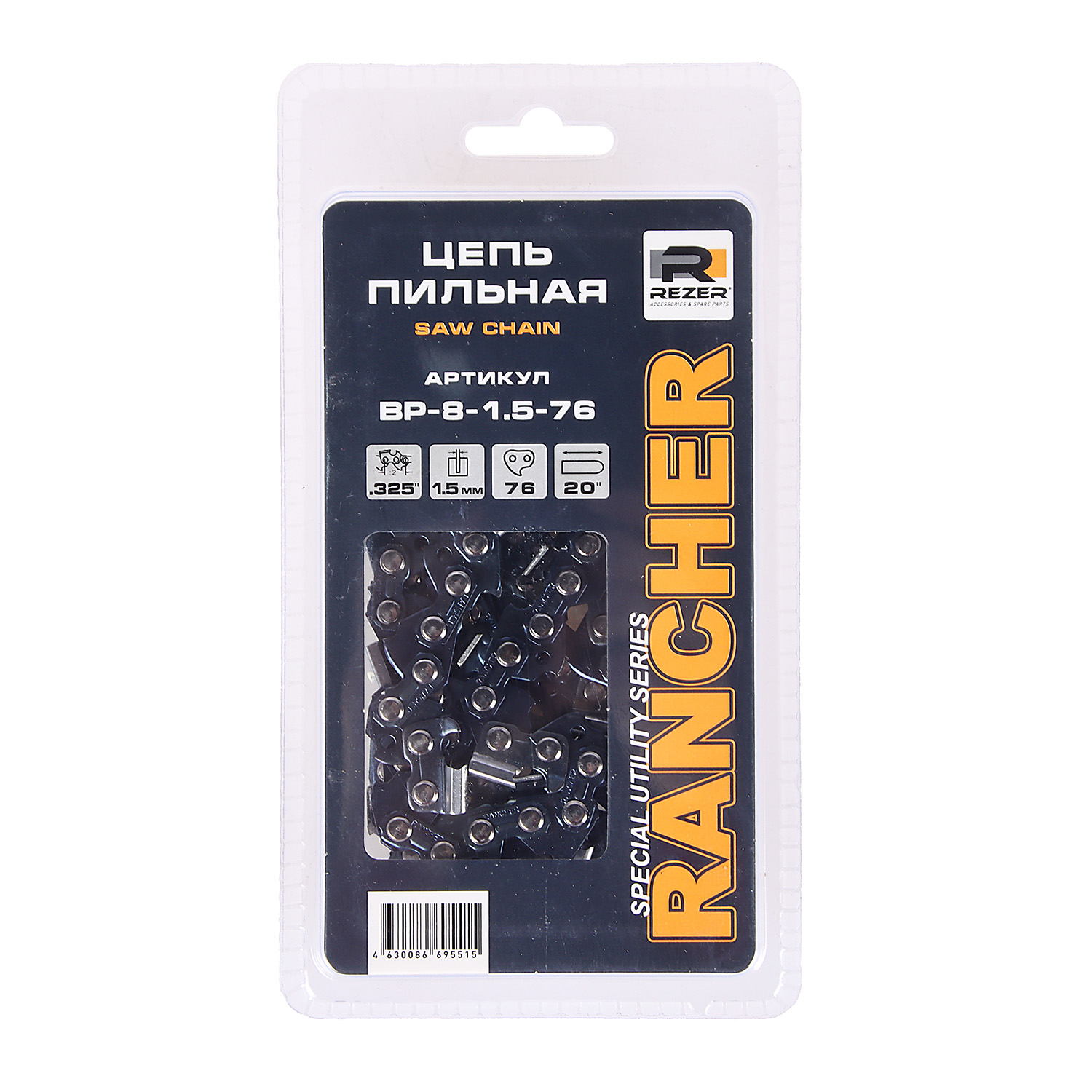 Цепь пильная шина50см 76звеньев шаг0,325" паз1,5мм Rancher BP-8-1.5-76 REZER *1/10/60