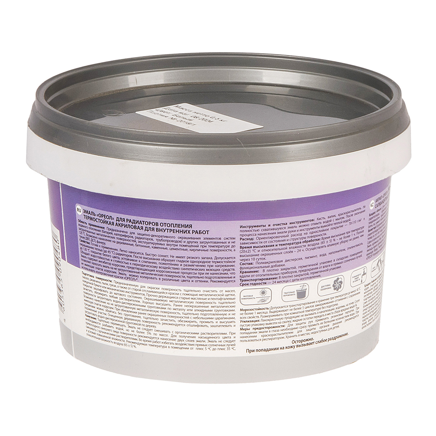 Эмаль для радиаторов акриловая белая матовая 0,5 кг Ореол *1/8/480