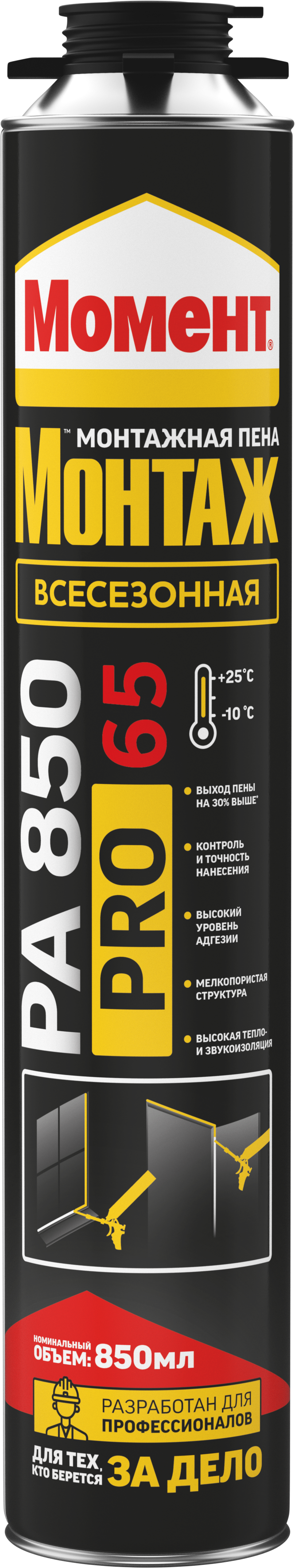 Профессиональная монтажная пена Момент Монтаж PRO 65 PA 850 применяется для следующих работ:
