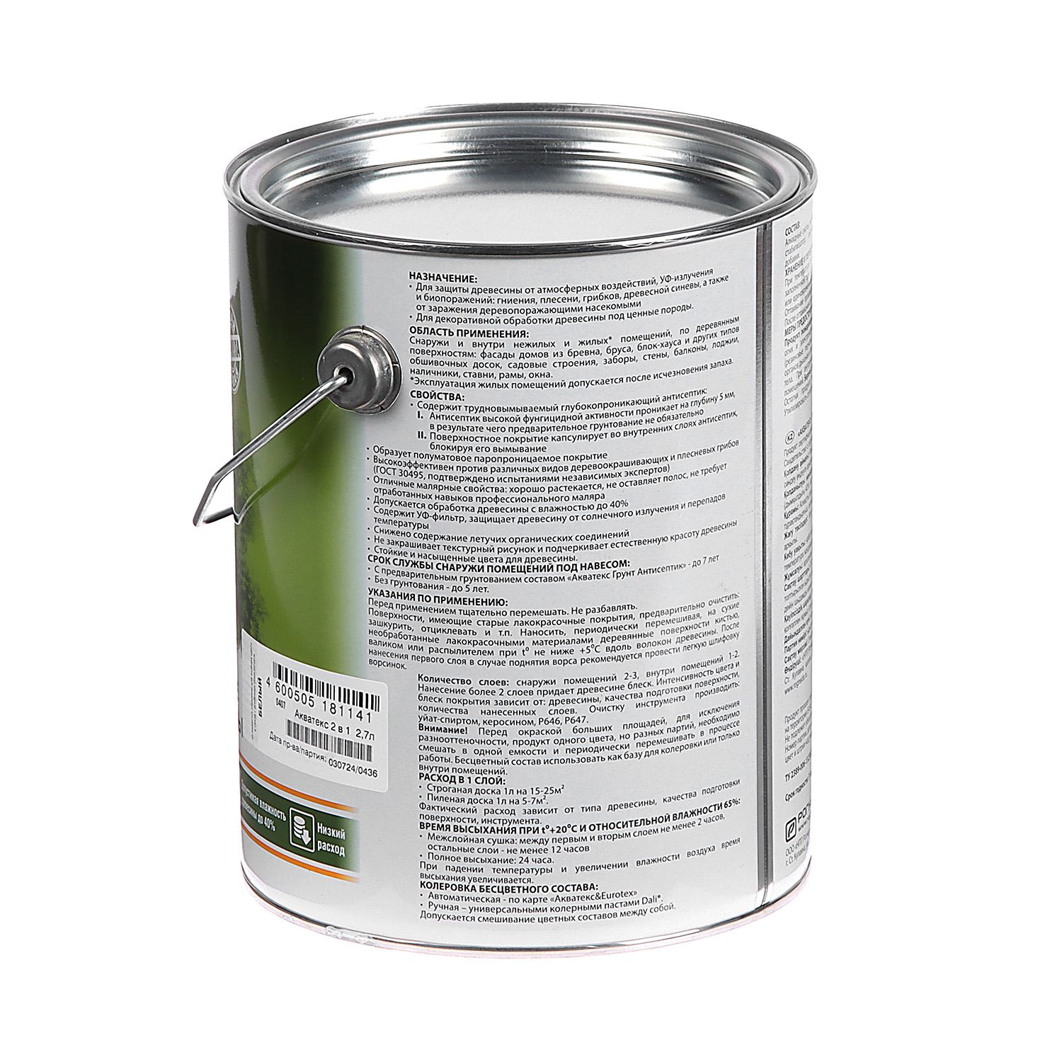 штАлкидное покрытие для дерева Акватекс 2 в 1 белое 2.7 л защищает поверхности от атмосферных воздействий, УФ-излучения, насекомых, гниения, деревоокрашивающих и плесневых грибов. Образует покрытие, имитирующее текстуру ценных пород дерева.