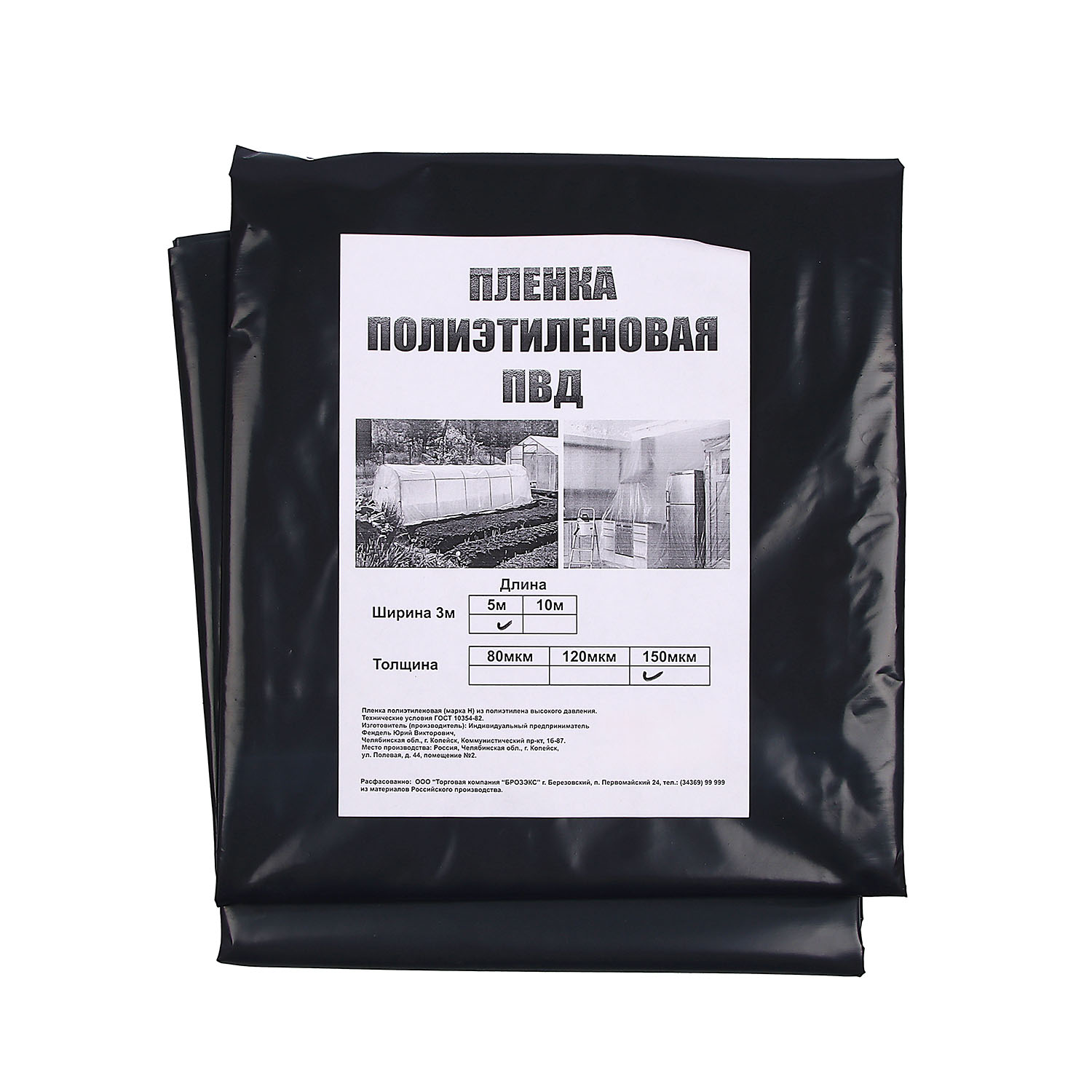 Пленка 3х5 м полиэтиленовая, 15 м², 150 мкм, черный