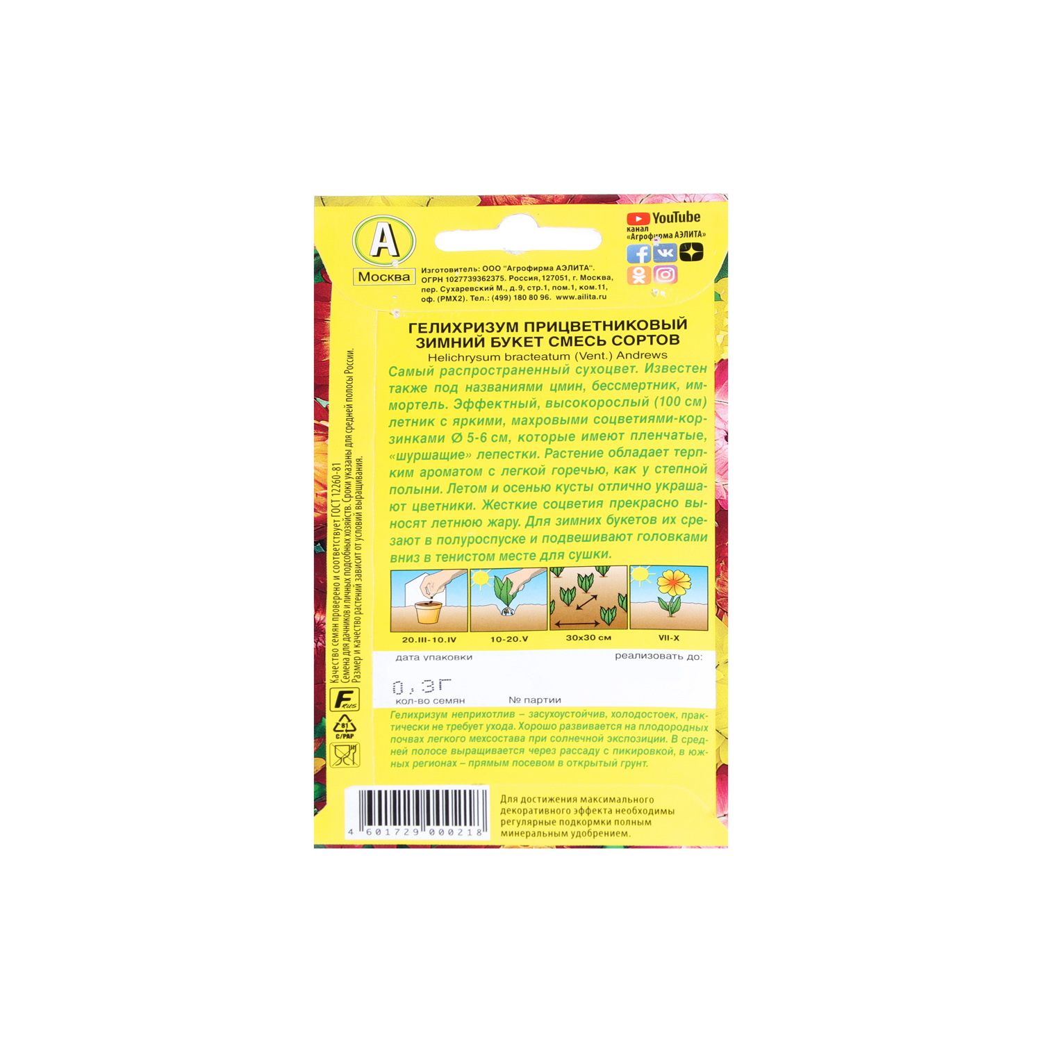 Семена Гелихризум Зимний букет прицветниквый смесь 0,3гр Аэлита цв *10/200