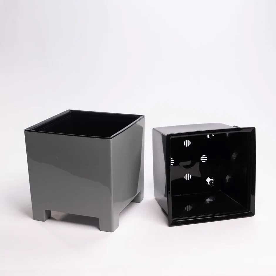 Кашпо пластм. "Нард" 2,1л 140х140мм h140мм со вставкой Серый муссон НР15-70 *1/8
