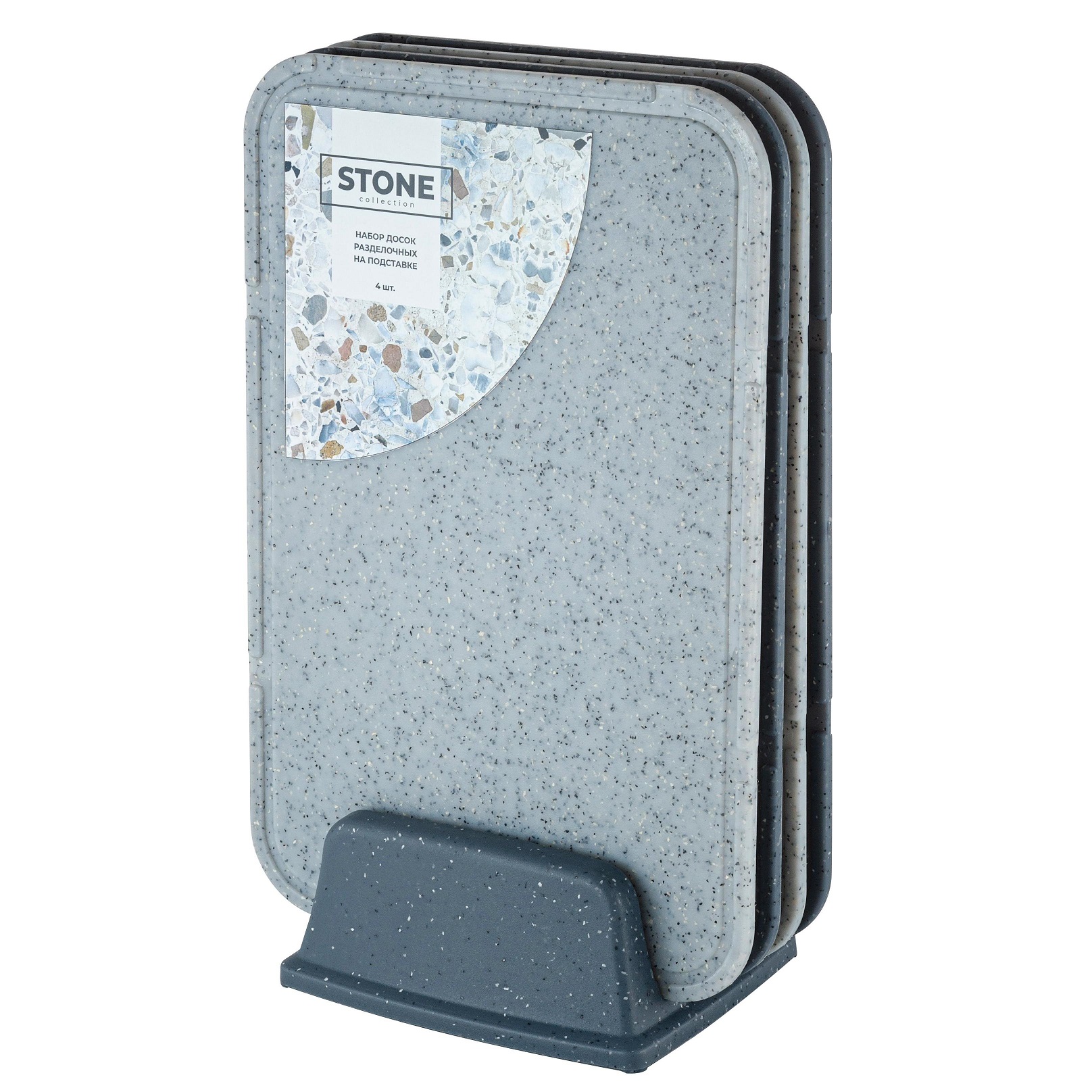 Доски разделочные пластм. Набор 4шт на Подставке 340х200мм "Stone" PT177512026 ("Sugar Spice") *1/7