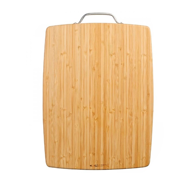 Доска разделочная дерев. (бамбук) 400х300х23мм, с металл. ручкой №3 арт.КТ-ДР-113 "Катунь" *1/12