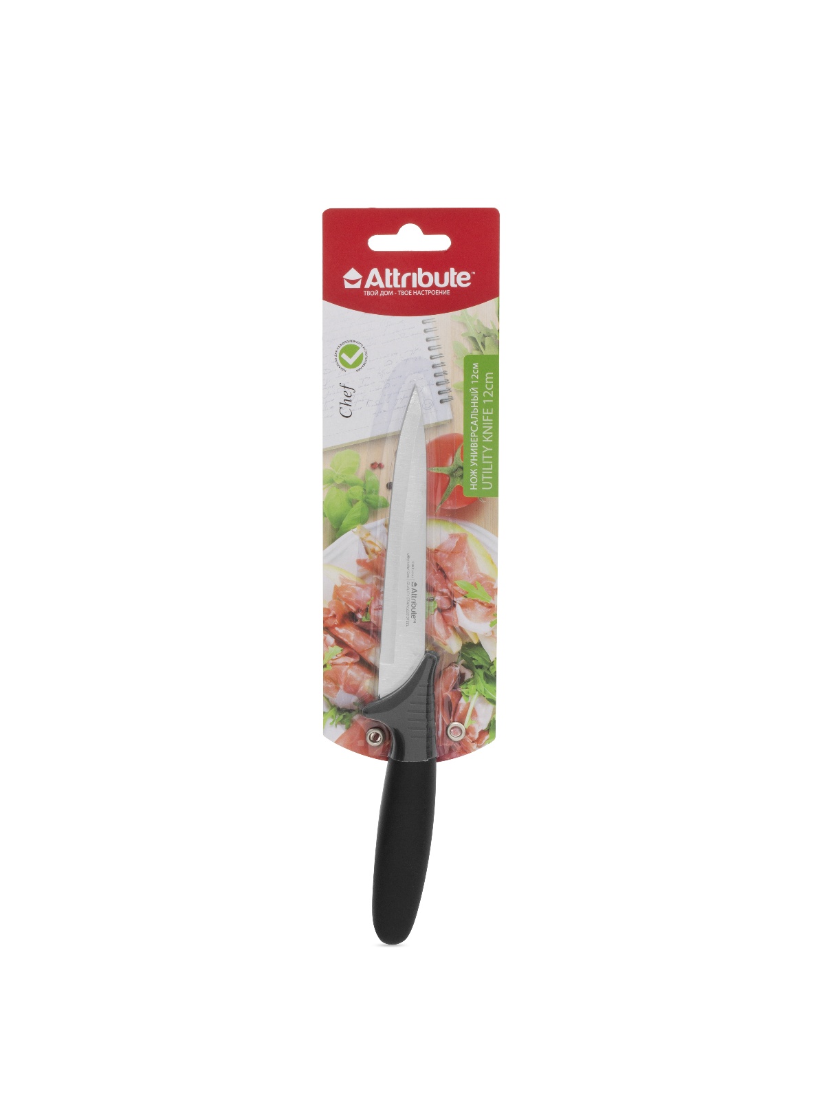 Нож кухонный ATTRIBUTE пл.р. Chef универсальный дл.лезв.12см AKC014 блистер *1/6/72