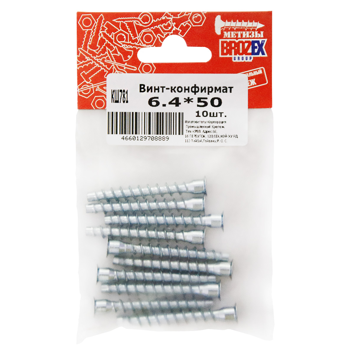 Винт-конфирмат 6,4*50 BROZEX пакет (10шт) *10/100