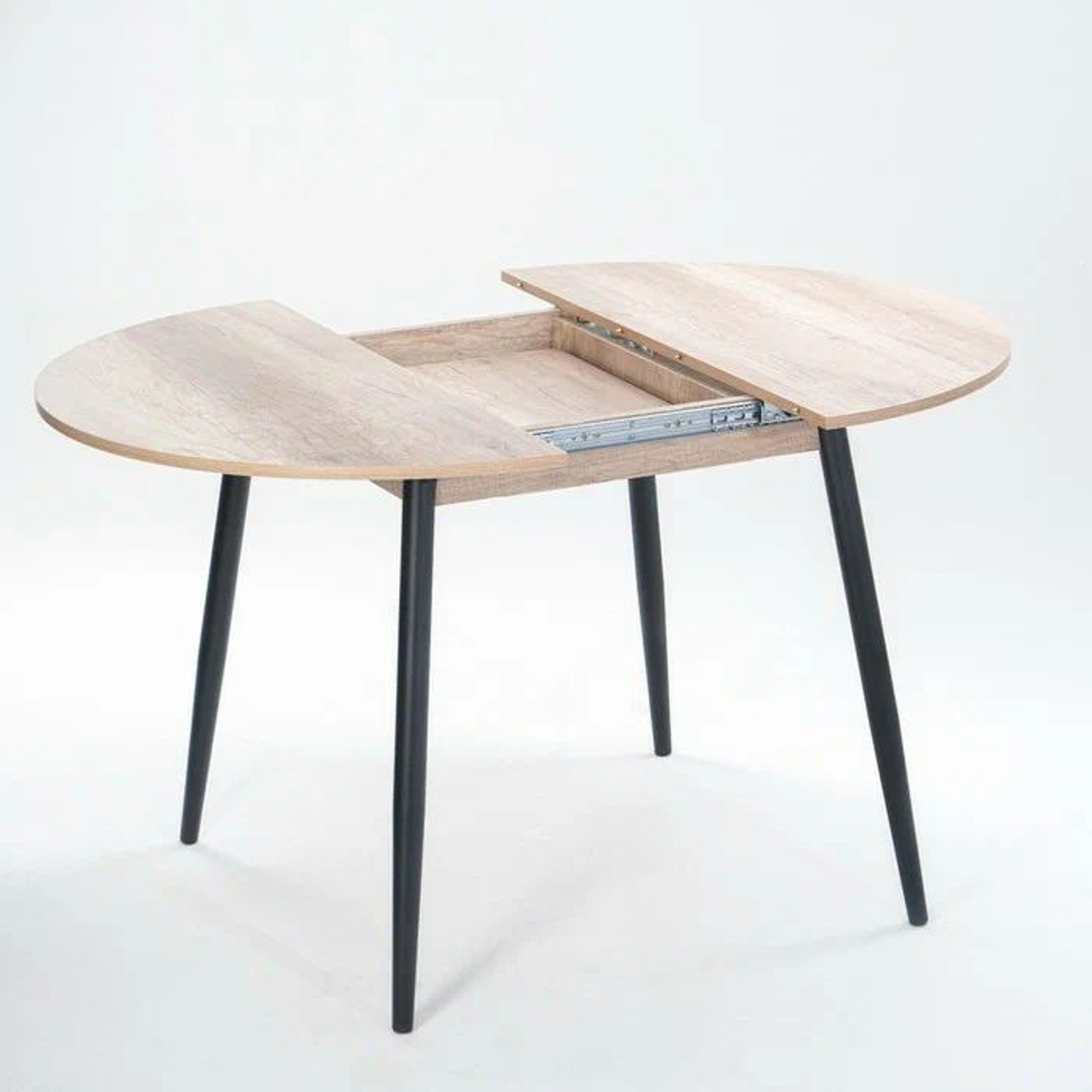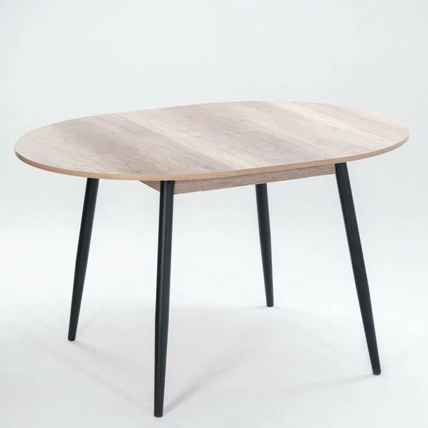 Стол раздв.КРУГЛЫЙ ОРИОН d950(+300)мм h750мм ЛДСП Дуб каньон+опора металл ЧЕРНЫЙ *1