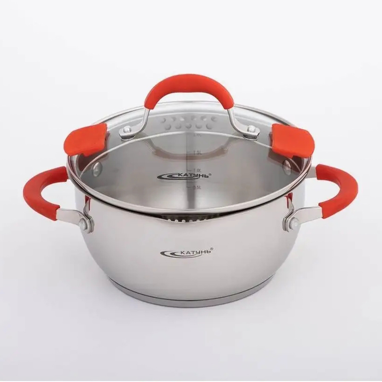 Кастрюля нерж. "Катунь" "Аврора" 3,0л d20см термораспред. дно, Стекл.кр., силик.руч. КТ07-D-20 *1/4